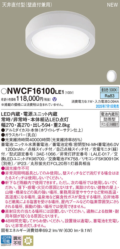 Panasonic シーリングライト NWCF16100LE1