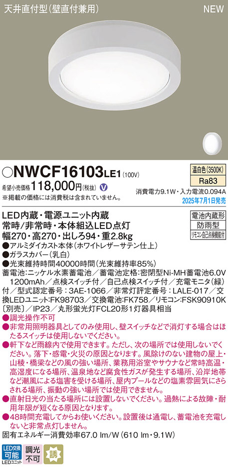 Panasonic シーリングライト NWCF16103LE1