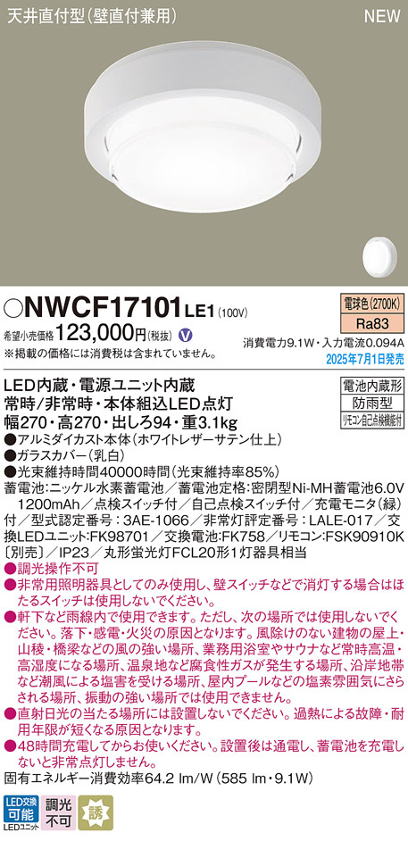 Panasonic シーリングライト NWCF17101LE1 | 商品情報 | LED照明器具・照明機器の激安通信販売・格安通販・業務用販売・見積もり販売 照明倉庫 -LIGHTING DEPOT-