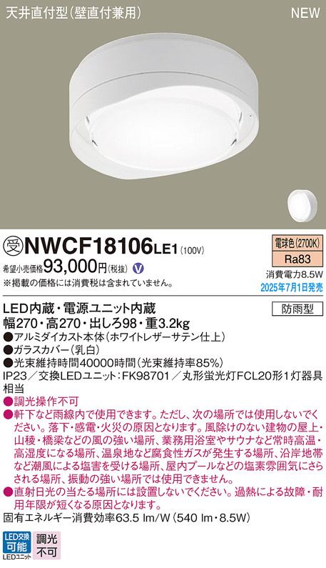 アルミダイカスト本体(ホワイトレザーサテン仕上)・ガラスカバー(乳白)