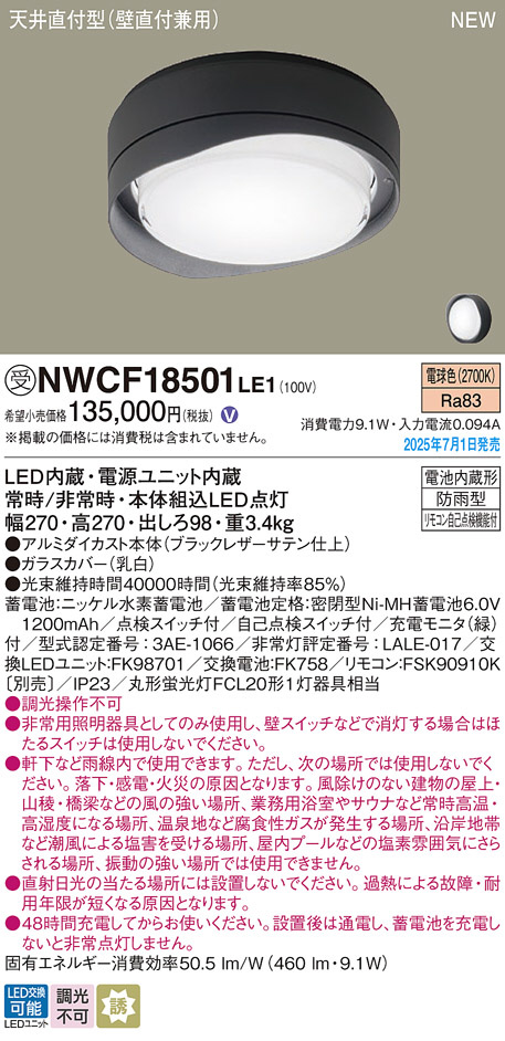 Panasonic シーリングライト NWCF18501LE1