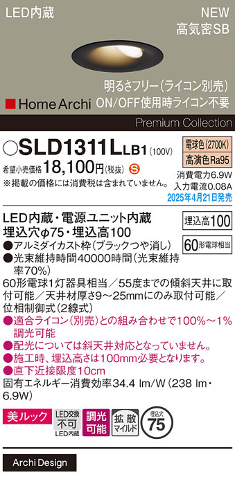 Panasonic ダウンライト SLD1311LLB1