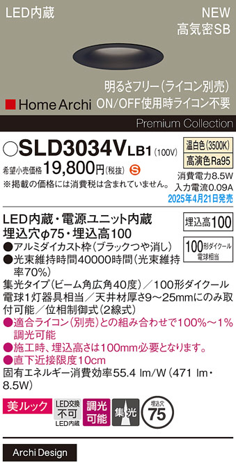 Panasonic ダウンライト SLD3034VLB1