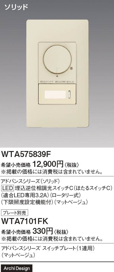 Panasonic アドバンスLED埋込逆位相調光SWC マットベージュ適合LED専用3.2A WTA575839F