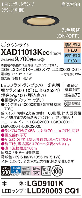 Panasonic ダウンライト XAD11013KCQ1