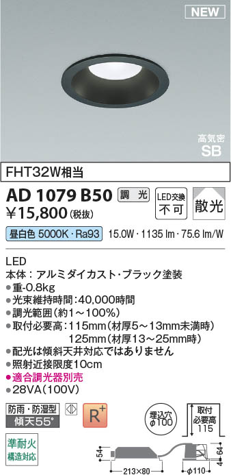 Koizumi コイズミ照明 LED高気密SBダウンライト AD1079B50