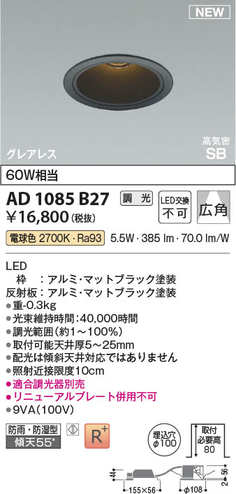Koizumi コイズミ照明 LED高気密SBダウンライト AD1085B27
