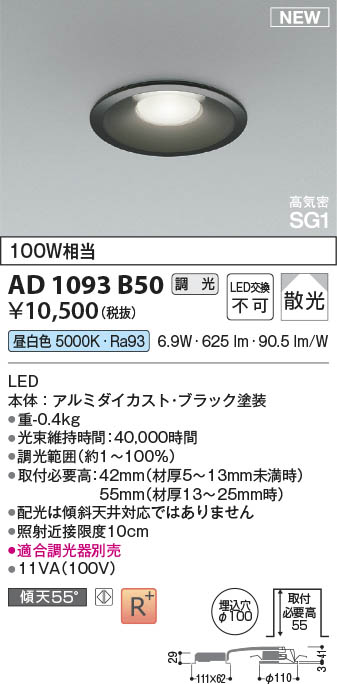 Koizumi コイズミ照明 LED高気密SG1ダウンライト AD1093B50