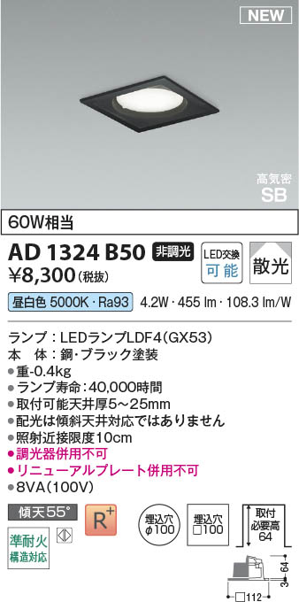 Koizumi コイズミ照明 LED高気密SBダウンライト AD1324B50