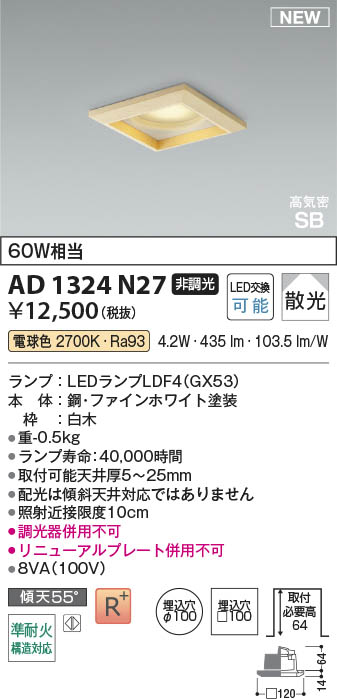 Koizumi コイズミ照明 LED高気密SBダウンライト AD1324N27 | 商品情報 | LED照明器具・照明機器の激安通信販売・格安通販・業務用販売・見積もり販売 照明倉庫 -LIGHTING DEPOT-