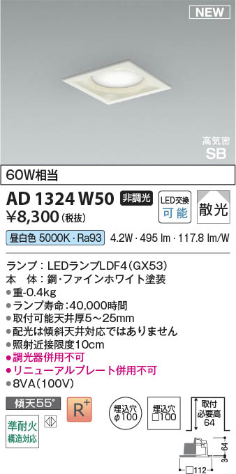 Koizumi コイズミ照明 LED高気密SBダウンライト AD1324W50