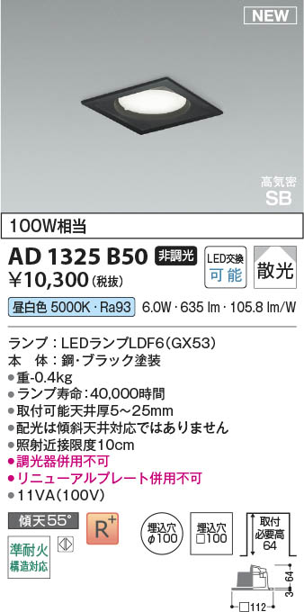 Koizumi コイズミ照明 LED高気密SBダウンライト AD1325B50