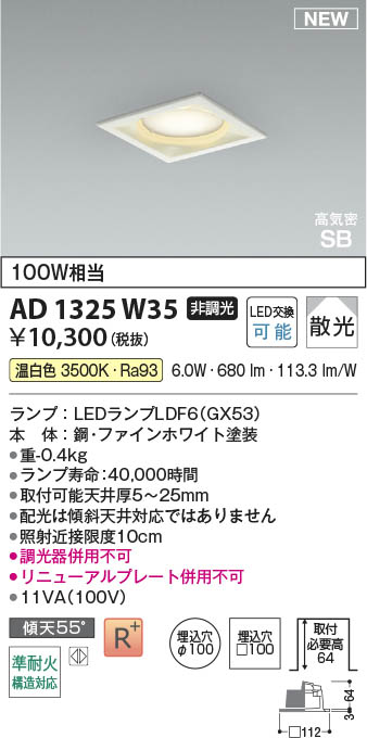 Koizumi コイズミ照明 LED高気密SBダウンライト AD1325W35