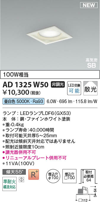 Koizumi コイズミ照明 LED高気密SBダウンライト AD1325W50