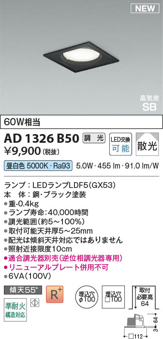 Koizumi コイズミ照明 LED高気密SBダウンライト AD1326B50