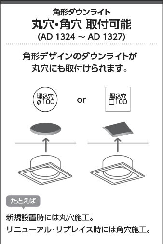 ●幅-□120 出幅-14 埋込穴径-φ100・□100 埋込高-64mm 重-0.5kg