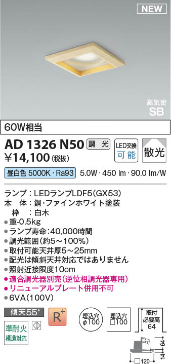 Koizumi コイズミ照明 LED高気密SBダウンライト AD1326N50