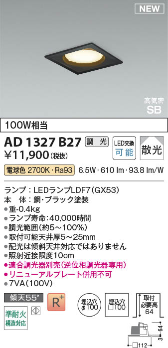 Koizumi コイズミ照明 LED高気密SBダウンライト AD1327B27