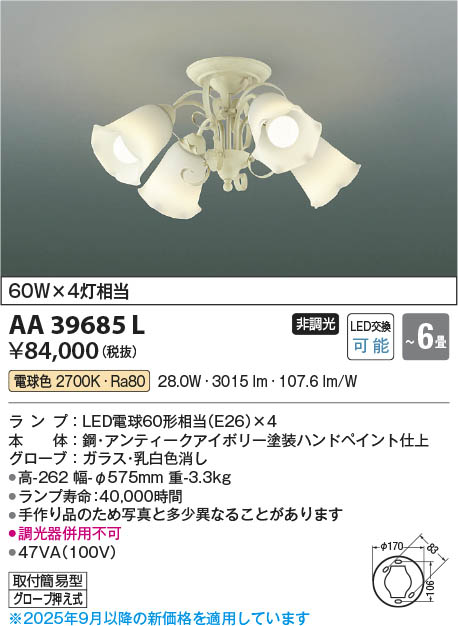 Koizumi ¥³¥¤¥º¥ß¾ÈÌÀ LED¥·¥ã¥ó¥Ç¥ê¥¢ AA39685L