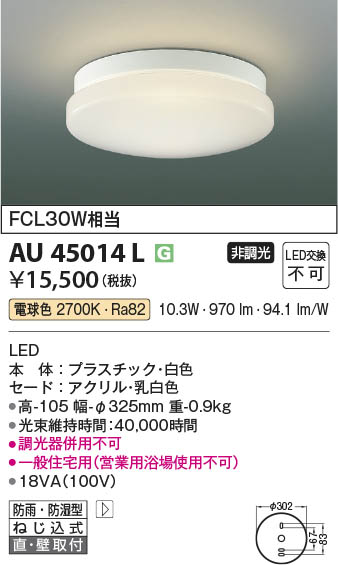 Koizumi ¥³¥¤¥º¥ß¾ÈÌÀ LEDËɱ«Ëɼ¾·¿¥·¡¼¥ê¥ó¥° AU45014L