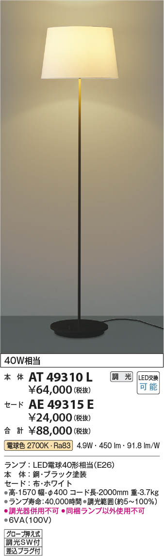 Koizumi ¥³¥¤¥º¥ß¾ÈÌÀ LED¥¹¥¿¥ó¥É ËÜÂÎ AT49310L