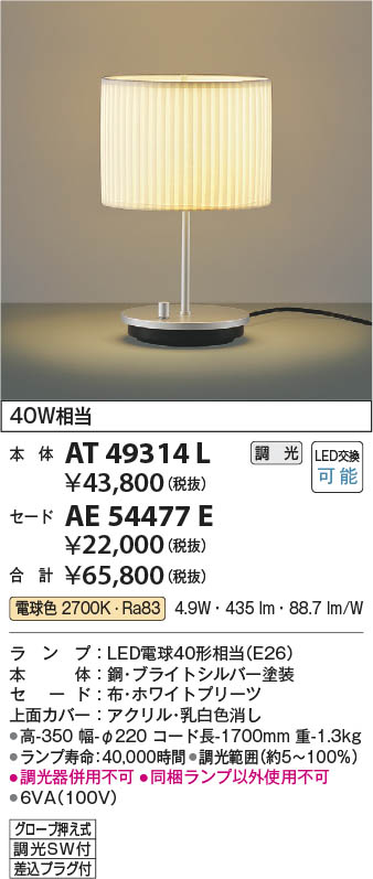 Koizumi ¥³¥¤¥º¥ß¾ÈÌÀ LED¥¹¥¿¥ó¥É ËÜÂÎ AT49314L