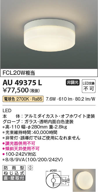 Koizumi ¥³¥¤¥º¥ß¾ÈÌÀ LEDËɱ«·¿¥·¡¼¥ê¥ó¥° AU49375L