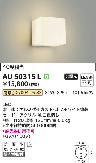 Koizumi ¥³¥¤¥º¥ß¾ÈÌÀ LEDËɱ«·¿¥Ö¥é¥±¥Ã¥È AU50315L