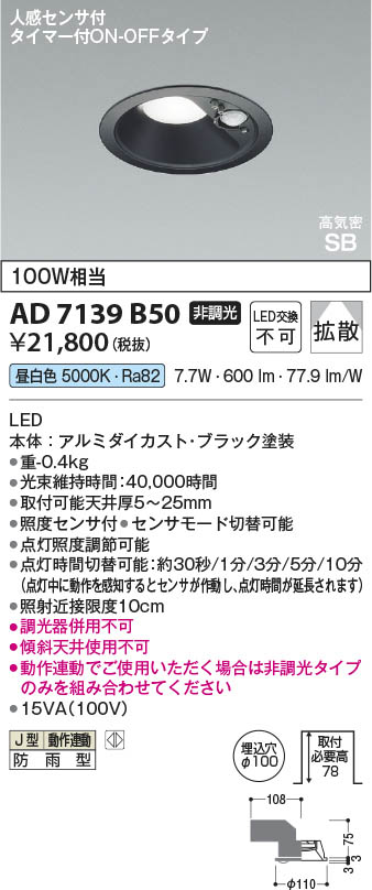 ËÜÂβèÁü Koizumi ¥³¥¤¥º¥ß¾ÈÌÀ LED¹âµ¤Ì©SB¥À¥¦¥ó¥é¥¤¥È AD7139B50
