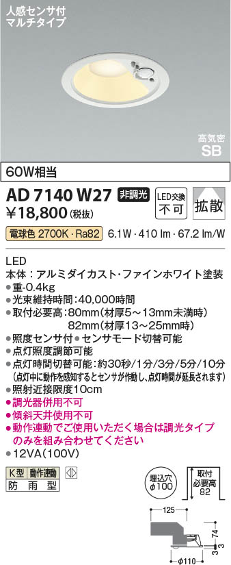 Koizumi ¥³¥¤¥º¥ß¾ÈÌÀ LED¹âµ¤Ì©SB¥À¥¦¥ó¥é¥¤¥È AD7140W27