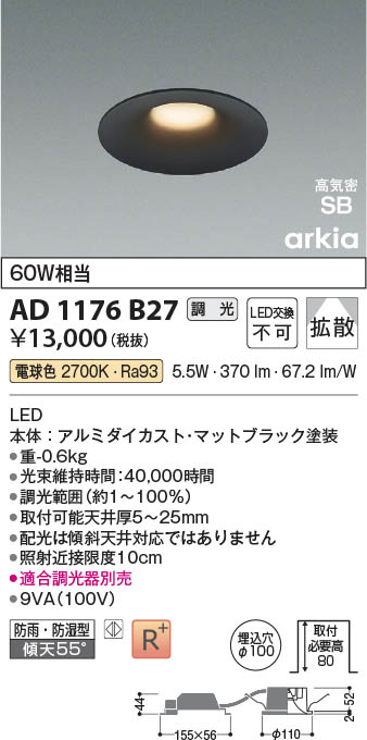 ËÜÂβèÁü Koizumi ¥³¥¤¥º¥ß¾ÈÌÀ LED¹âµ¤Ì©SB¥À¥¦¥ó¥é¥¤¥È AD1176B27