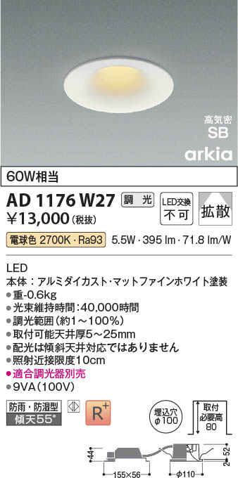 Koizumi ¥³¥¤¥º¥ß¾ÈÌÀ LED¹âµ¤Ì©SB¥À¥¦¥ó¥é¥¤¥È AD1176W27