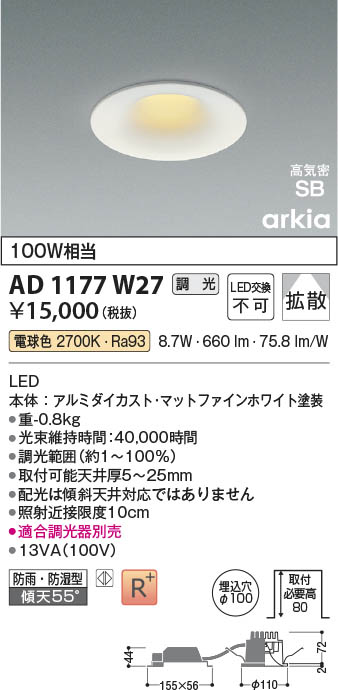 Koizumi ¥³¥¤¥º¥ß¾ÈÌÀ LED¹âµ¤Ì©SB¥À¥¦¥ó¥é¥¤¥È AD1177W27