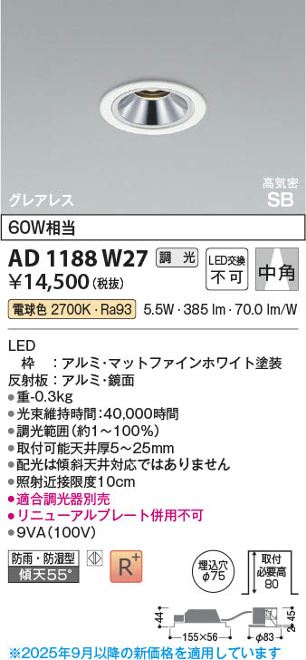 ÆÃħ¼Ì¿¿ Koizumi ¥³¥¤¥º¥ß¾ÈÌÀ LED¹âµ¤Ì©SB¥À¥¦¥ó¥é¥¤¥È AD1188W27