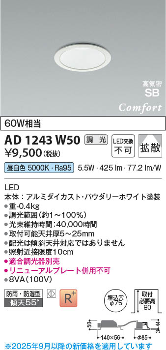 Koizumi ¥³¥¤¥º¥ß¾ÈÌÀ LED¹âµ¤Ì©SB¥À¥¦¥ó¥é¥¤¥È AD1243W50