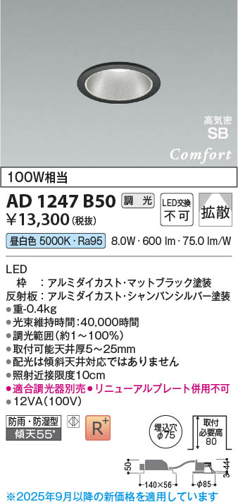 Koizumi ¥³¥¤¥º¥ß¾ÈÌÀ LED¹âµ¤Ì©SB¥À¥¦¥ó¥é¥¤¥È AD1247B50