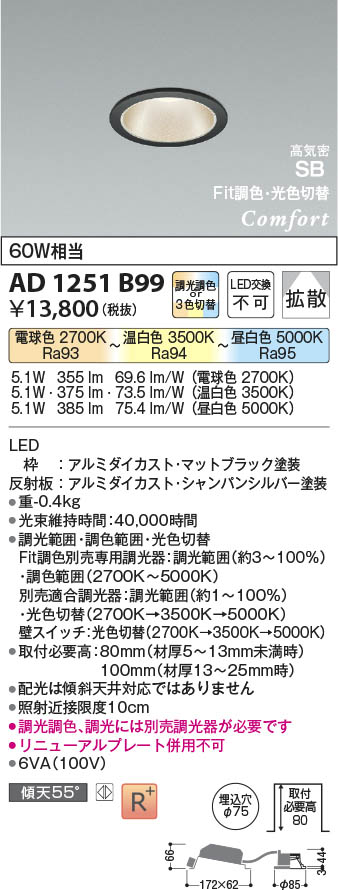 Koizumi ¥³¥¤¥º¥ß¾ÈÌÀ LED¹âµ¤Ì©SB¥À¥¦¥ó¥é¥¤¥È AD1251B99