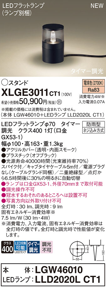 Panasonic ¥¨¥¯¥¹¥Æ¥ê¥¢¡¦¥¢¥¦¥È¥É¥¢ XLGE3011CT1 | ¾¦ÉʾҲð | ¾ÈÌÀ´ï¶ñ¤ÎÄÌÈΡ¦¥¤¥ó¥Æ¥ê¥¢¾ÈÌÀ¤ÎÄÌ¿®ÈÎÇä¡Ú¥é¥¤¥È¥¹¥¿¥¤¥ë¡Û·ã°Â¡¦³Ê°Â²Á³Ê¤Ë¤Æ¤´Äó¶¡Ã桪