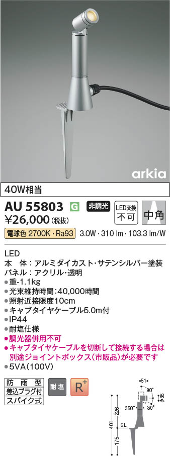 Koizumi ¥³¥¤¥º¥ß¾ÈÌÀ LED¥¨¥¯¥¹¥Æ¥ê¥¢¥¹¥Ñ¥¤¥¯¥¹¥Ý¥Ã¥È AU55803